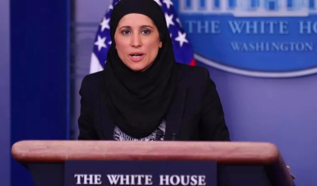 أثار ظهور أول امرأة مسلمة محجبة على منصة البيت الأبيض الخاصة بالإيجاز الصحفي، احتفاء واسعا على منصات التواصل الاجتماعي، في سابقة تاريخية تشهدها الولايات المتحدة الأمريكية.