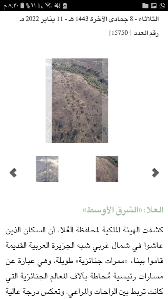 كشفت الهيئة الملكية لمحافظة العُلا، أن السكان الذين عاشوا في شمال غربي شبه الجزيرة العربية القديمة قاموا ببناء «ممرات جنائزية» طويلة، وهي عبارة عن مسارات رئيسية مُحاطة بآلاف المعالم الجنائزية التي كانت تربط بين الواحات والمراعي، وتعكس درجة عالية من الترابط الاجتماعي والاقتصادي بين سكان المنطقة في الألفية الثالثة قبل الميلاد، وجاء هذا الاكتشاف بالشراكة بين الهيئة بالشراكة مع جامعة غرب أستراليا.