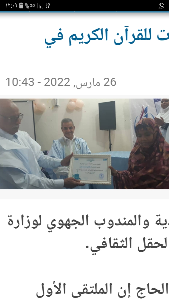 أطلقت جمعية الفتاة للتوعية والتربية على مستوى العاصمة الاقتصادية نواذييو ملتقى ثقافيا بحضور السلطات الإدارية والبلدية والمندوب الجهوي لوزارة الثقافة ولفيف من الفاعلين في الحقل الثقافي.