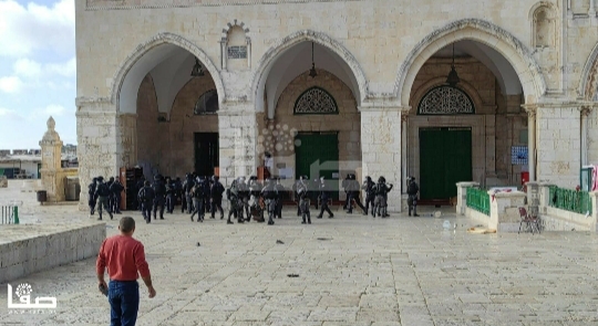 واعتدت القوات الإسرائيلية، على النساء بالدفع والضرب، وهاجمت أحد حراس المسجد الأقصى وأحد المسعفين، وأطلقت القنابل الصوتية وقنابل الغاز والرصاص المعدني، وحطمت زجاج منبر صلاح الدين في المصلى القبلي.