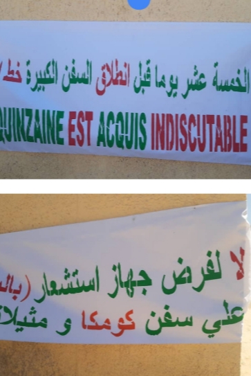 ورفع المحتجون شعارات من بينها: «لا لباليز، انقذوا سفن الصيد التقليدي، 15 يوما قبل انطلاق السفن الكبيرة خط أحمر».