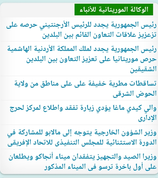 وكالة السواحل للانباء(نواكشوط):جدد فخامة رئيس الجمهورية، السيد محمد ولد الشيخ الغزواني، حرص موريتانيا على تعزيز وتطويرعلاقات التعاون القائمة بينها وجمهورية الأرجنتين ، خدمة للمصالح المشتركة للشعبين الصديقين.