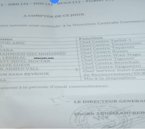 وكالة السواحل للانباء(نواكشوط):أجرى المدير العام للشركة الوطنية للكهرباء "صوملك" الشيخ ولد عبد الله بده ، أمس الاثنين تغييرات على مستوى رؤساء مراكز الشركة.