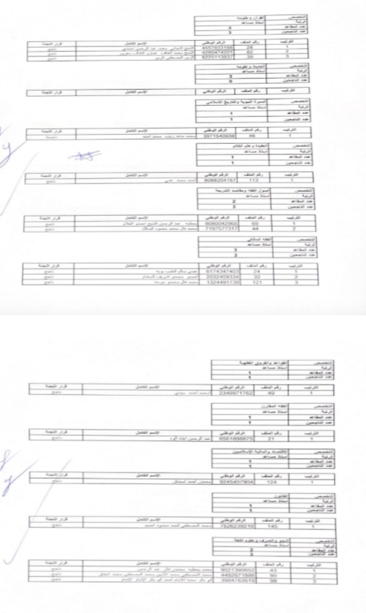 ولم تعلن اللجنة عن نجاح أي مترشح للمقاعد الثلاثة الخاصة بأساتذة الحديث وعلومه، بينما استُكملت جميع المقاعد في باقي التخصصات.