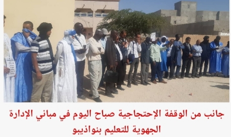 وكالة السواحل للأنباء(نواكشوط):نظم عدد من المعلمين والأساتذة، اليوم الأربعاء وقفة احتجاجية أمام مباني ولاية تيرس زمور، وذلك في إطار وقفات احتجاجية دعت لها هيئة التنسيق المشترك بين نقابات التعليم الأساسي والثانوي.
