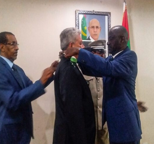 وكالة السواحل للانباء(نواكشوط):وشح وزير الشؤون الخارجية والتعاون والموريتانيين في الخارج محمد سالم ولد مرزوك، باسم رئيس الجمهورية محمد ولد الشيخ الغزواني، اليوم الخميس بمقر الوزارة في نواكشوط، سعادة السيد ليوناردو كارفيهلو مونتيرس، سفير جمهورية البرازيل الفيدرالية، بوسام كوماندور من نظام الاستحقاق الوطني، وذلك بمناسبة انتهاء مهمته في موريتانيا.