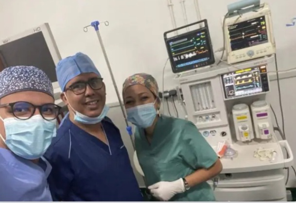 ويتكون الفريق الطبي من الأخصائي في جراحة الصدر هاشم الطالب المين، والأخصائي في التخدير والإنعاش عبد الرحمن اجدود، وفينة التخدير مريم العابد.