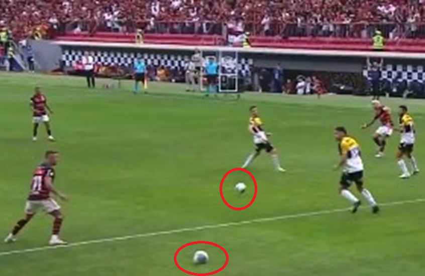 وعندما كانت المباراة تلفظ أنفاسها الأخيرة والنتيجة تشير للتعادل الإيجابي 1-1، انطلق نادي فلامينغو في هجمة منظمة لتصل الكرة إلى المهاجم سيبولينيو داخل منطقة الجزاء، ولكن عندما حاول الأخير التسديد في المرمى تدخل أحد مدافعي كريسيوما وقام بركل كرة ثانية تم إلقاؤها في الملعب لترتطم بكرة مهاجم فلامينغو وتذهب الكرتان في تجاهين مختلفين.
