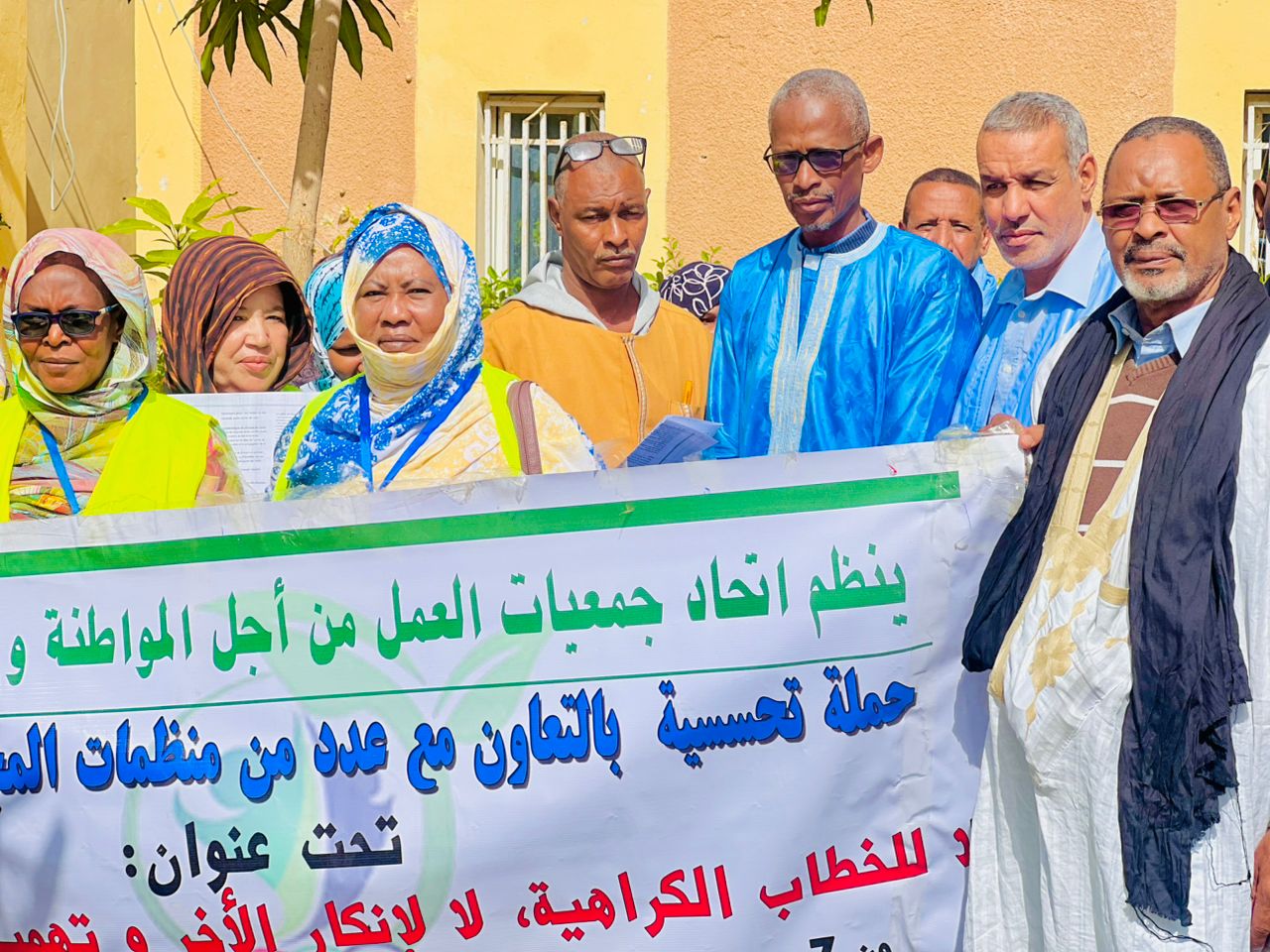 واصل اتحاد جمعيات العمل من اجل المواطنة بالتعاون مع منظامات المجتمع المدنى النشطة حملته التحسيسية لليوم الثالث بمقاطعة الرياض بنواكشوط الجنوبية حول خطاب الكراهية.