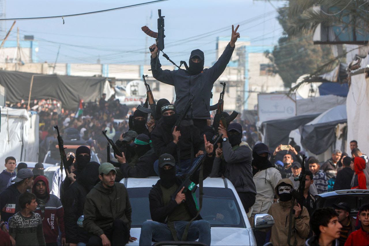 وكما خرج مقاتلو حماس بسياراتهم يجوبون مدينة خان يونس في جنوب قطاع غزة وسط هتافات الجماهير على الرغم من تأخير دام ما يقرب من ثلاث ساعات في بدء تنفيذ الاتفاق الذي يأتي بعد 15 شهرا من الحرب المدمرة.