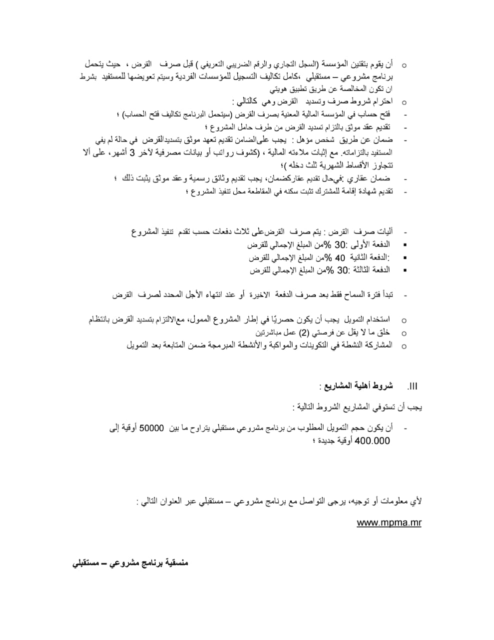 كيف يمكن لوزارة الشباب القول انها ستوفر قروضا لخلق 4000 فرصة عمل،وهى لاتقدم اكثر من 500 الف قديمة وتشترط على اصحاب المشاريع ان يكون لديهم سلفا 4 ملايين اوقية؟