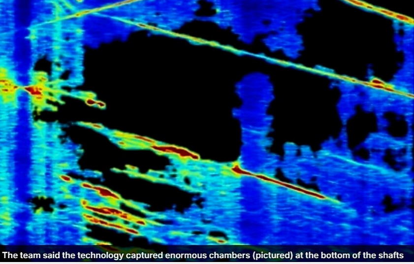 وبحسب تقرير نشرته صحيفة "ديلي ميل" البريطانية، قال فيليبو بيوندي، المهندس المتخصص في الرادار والمسؤول عن المشروع، إن بيانات التصوير المقطعي الراداري التي جمعتها أقمار صناعية تابعة لشركات Umbra وCapella وICEYE وCosmo-SkyMed جاءت متطابقة، حيث أظهرت ما وصفه بأسطوانات عملاقة تنحدر مباشرة أسفل هرم خفرع، لتنتهي بغرف مكعبة تزيد مساحتها على 260 قدمًا مربعًا.