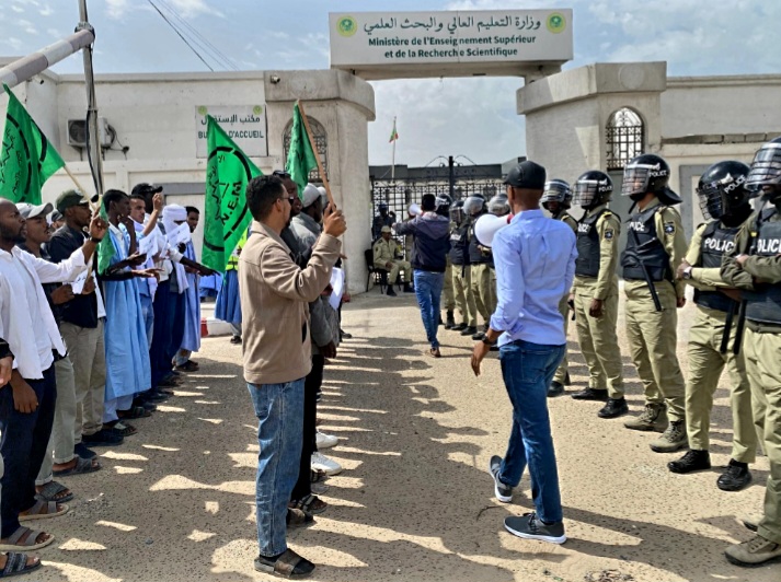 احتج اليوم الجمعة فى نواكشوط العاصمة، الاتحاد الوطني لطلبة موريتانيا أمام وزارة التعليم العالي والبحث العلمي رفضا لقطع مئات المنح عن الطلبة القدامى وسط العام الدراسي، ومطالبة بمراجعة المعايير وإنصاف الطلبة المتضررين.