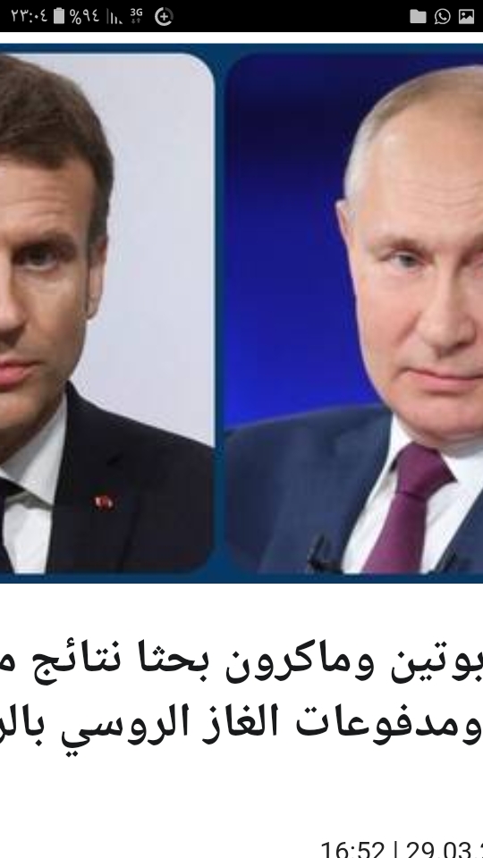 أعلن الكرملين أن الرئيس فلاديمير بوتين بحث مع نظيره الفرنسي إيمانويل ماكرون آخر مستجدات الأزمة الأوكرانية في ضوء الجولة الأخيرة من المفاوضات بين موسكو وكييف في إسطنبول.