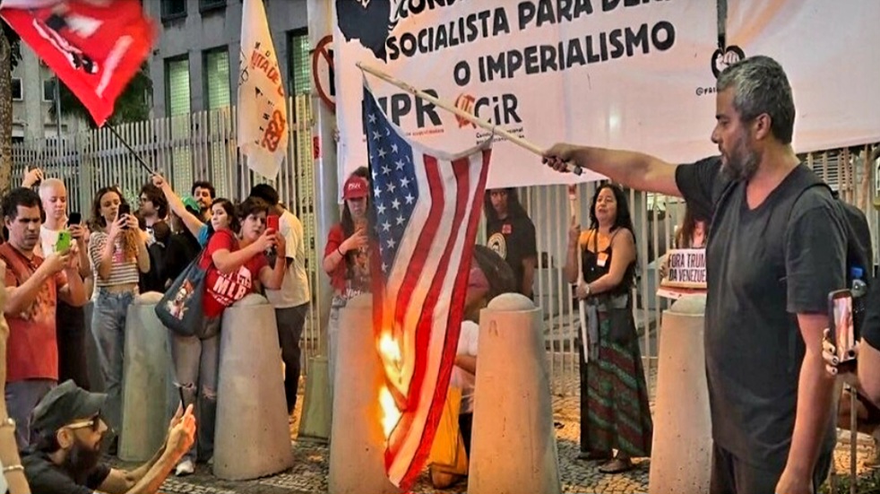 نظم مئات البرازيليين مظاهرة احتجاجية في مركز مدينة ريو دي جانيرو ضد العدوان الأمريكي على فنزويلا مرددين شعارات بينها "ترامب اخرج من فنزويلا" و"يجب احترام فنزويلا".