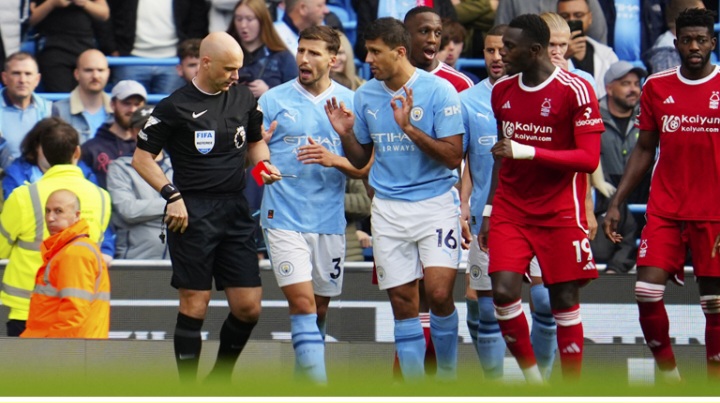 نواكشوط(وكالة السواحل للأنباء): تلقى لاعب الوسط الإسباني رودري، البطاقة الحمراء خلال مباراة فريقه مانشستر سيتي ضد ضيفه نوتنغهام فورست، يوم السبت ضمن منافسات الدوري الإنجليزي، لاعتدائه على لاعب الفريق المنافس.