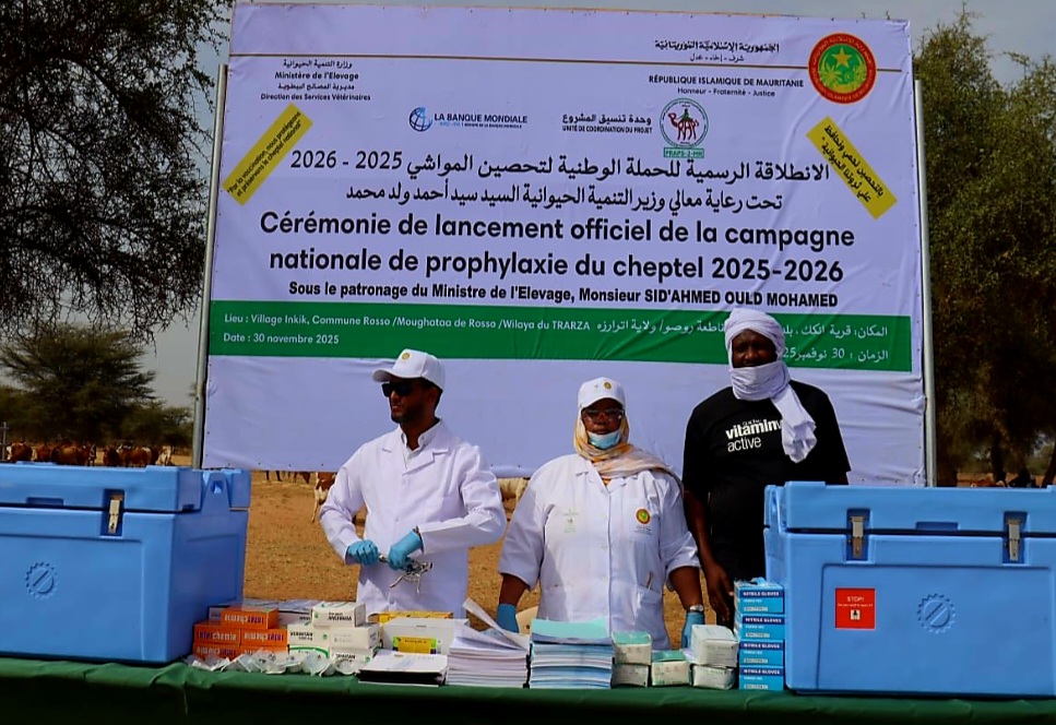 أطلقت موريتانيا امس الأحد الحملة الوطنية لتحصين المواشي 2025 – 2026، التى تستهدف تحصين 8 ملايين رأس من الأغنام ضد طاعون المجترات الصغيرة، و3 ملايين من الأبقار ضد مرض ذات الرئة والجنب المعدي.
