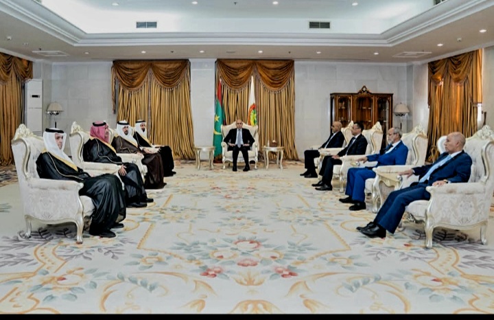 واستقبل الوزير السعودى من طرف الرئيس محمد ولد الشيخ الغزواني في القصر الرئاسي.