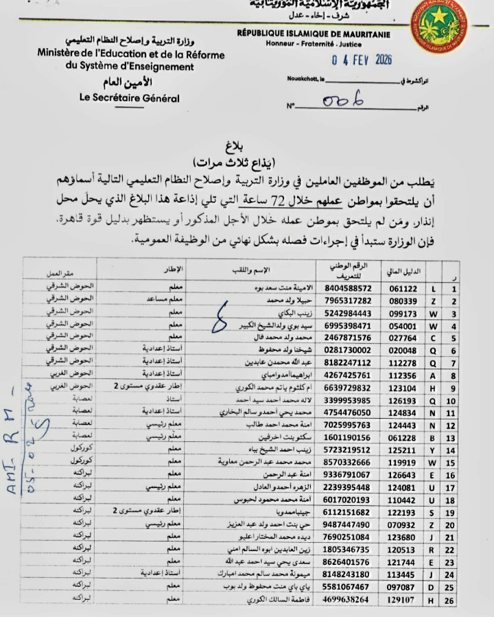 أقرّ المكتب التنفيذي للرابطة الدولية للعمد الفرنكفونيين (أ اي ام اف)، خلال دورته الـ106، إسناد رئاسة الرابطة بالوكالة إلى رئيسة جهة نواكشوط، فاطمة بنت عبد المالك، وذلك بإجماع الأعضاء، في خطوة وصفت بانها تعكس مكانة نواكشوط المتنامية داخل الفضاء الفرنكفوني.