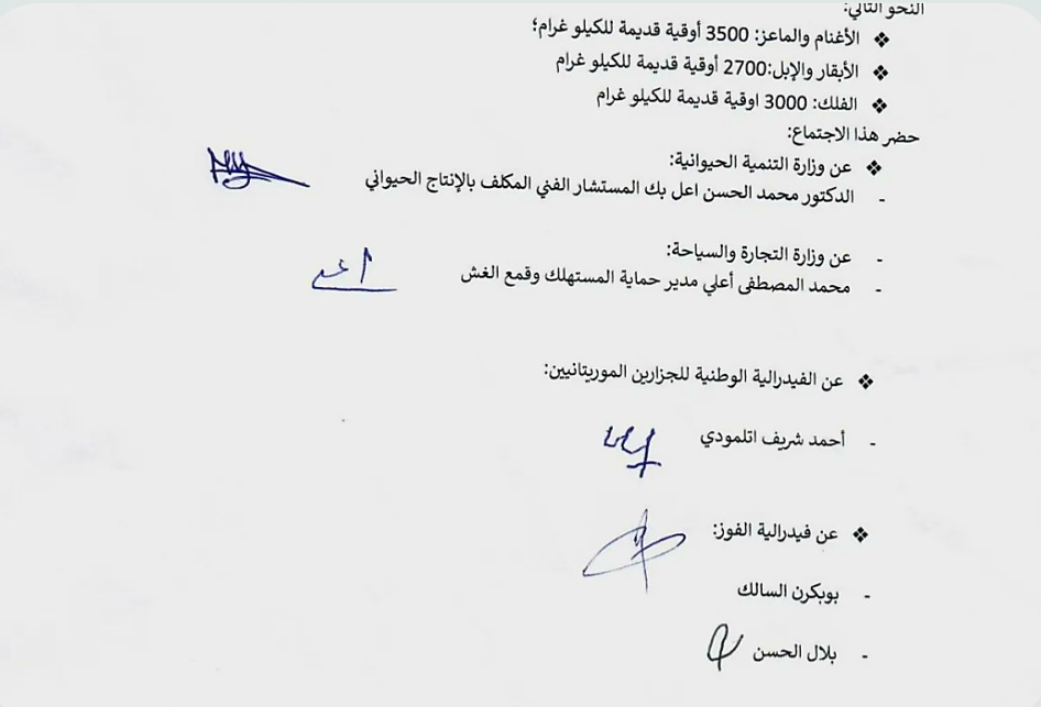 نواكشوط – أعلنت وزارة التنمية الحيوانية تحديد أسعار اللحوم الحمراء في العاصمة: 3500 أوقية للضأن والماعز، 2700 أوقية للإبل والبقر، و3000 أوقية لـ"الفلكة".