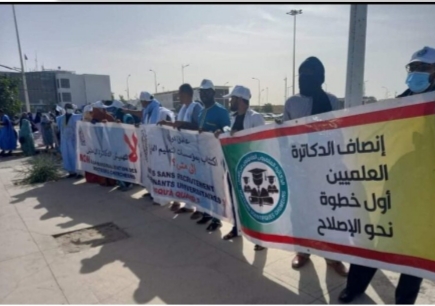 وكالة السواحل للانباء(نواكشوط):نظم اليوم تجمع الدكاترة والتكنولوجيين المتعاونين مع مؤسسات التعليم العالي، وقفة أمام القصر الرئاسي، طالب فيها رئيس الجمهورية بالتدخل شخصيا، بإصدار أوامره لتسوية الوضعية الإدارية لأفراد التجمع، عبر إجراء اكتتاب عاجل يغطي حاجة هذه المؤسسات.