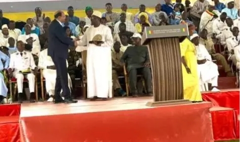 وكالة السواحل للأنباء(نواكشوط):كرم الرئيس السنغالي ماكي صال، وهو يرتدى زيه التقليدى اول امس الجمعة، في مدينة تامباكوندا، وزير التنمية الحيوانية الموريتاني عبد الله ولد عثمان هو يرتدى الزي الغربي، بدرع تثمين الإسهام في تطوير الثروة الحيوانية.