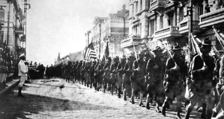 نواكشوط(وكالة السواحل للأنباء):لم يفكر الأمريكيون في غزو روسيا فقط بل وأنزل الجيش الأمريكي قواته في 16 أغسطس عام 1918 في فلاديفوستوك بالشرق الأقصى الروسي، وذلك على عكس السائد من أن الجانبين لم يتقاتلا.