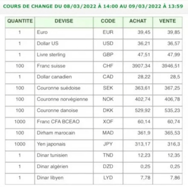 فقد أظهرت بيانات البنك المركزي، اليوم، تراجع سعر صرف اليورو إلى 39.55 أوقية جديدة مقابل 40.24 أوقية جديدة نهاية الأسبوع المنصرم. فيما أظهرت البيانات استقرار سعر صرف الدولار عند 36.3 أوقية جديدة.