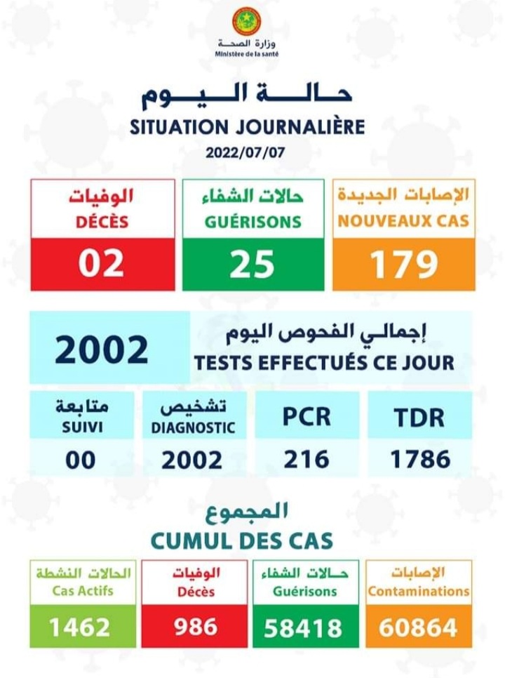 تسجل حالتي وفاة و 179 إصابة بكورونا بعد إجراء 2002 فحصا (توزيع الحالات)