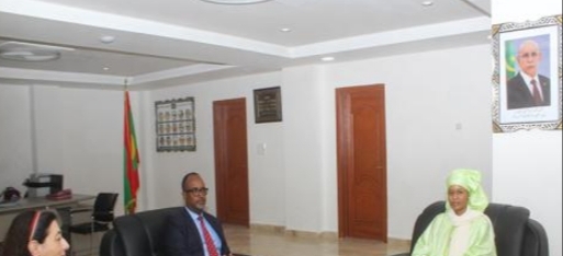 وكالة السواحل للانباء (نواكشوط):استقبلت وزيرة البيئة والتنمية المستدامة السيدة عائشة داوودا جالو، اليوم الخميس بمكتبها في نواكشوط، المدير الإقليمي للعمليات بالبنك الدولي، السيد ناتان بيليت، الذي يزور بلادنا حاليا.