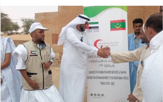 وزع الهلال الأحمر الإماراتي، اليوم الأحد، مساعدات رمضانية على سكان 40 قرية بولاية اترارزة جنوبي موريتانيا.