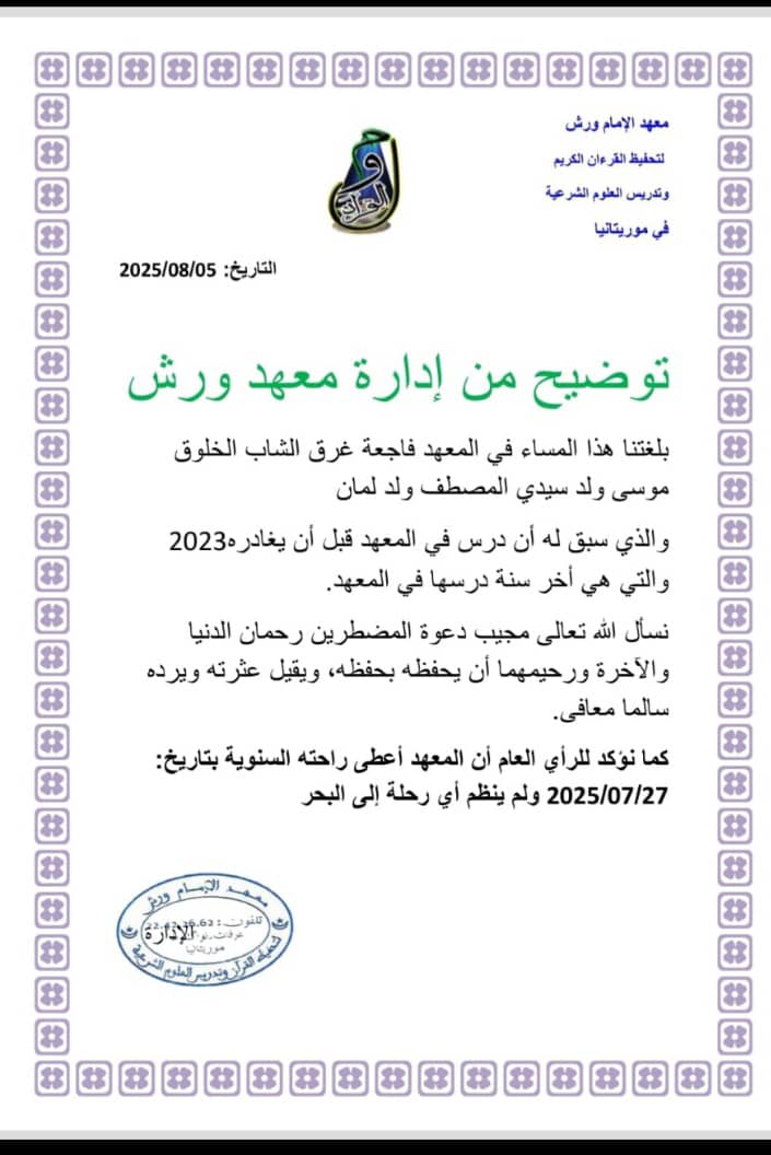اعلن معهد ورش فى بيان له انه لم ينظم اي رحلة الى البحر وانماذلك كان فى 27 من يوليو.