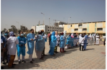 نظمت مجموعة من العمال عقدويي كوفيد19 وقفة احتجاجية صباح اليوم الأربعاء أمام القصر الرئاسي، طالبوا خلالها بمنحهم عقودا دائمة.
