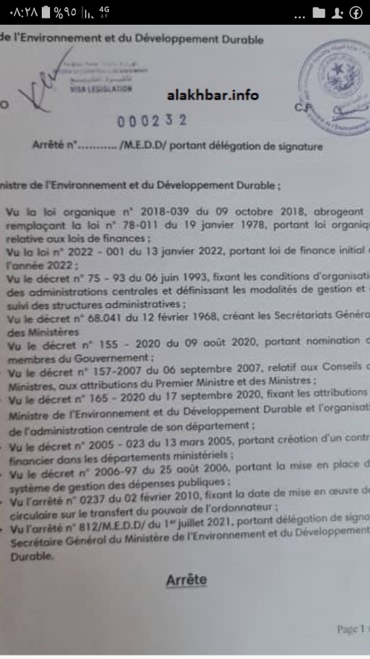 وأسندت الوزيرة بنت بكاي هذه الصلاحيات لمستشارها الفني الحسن ولد مولود للقيام بمهام الأمين العام بالوكالة.