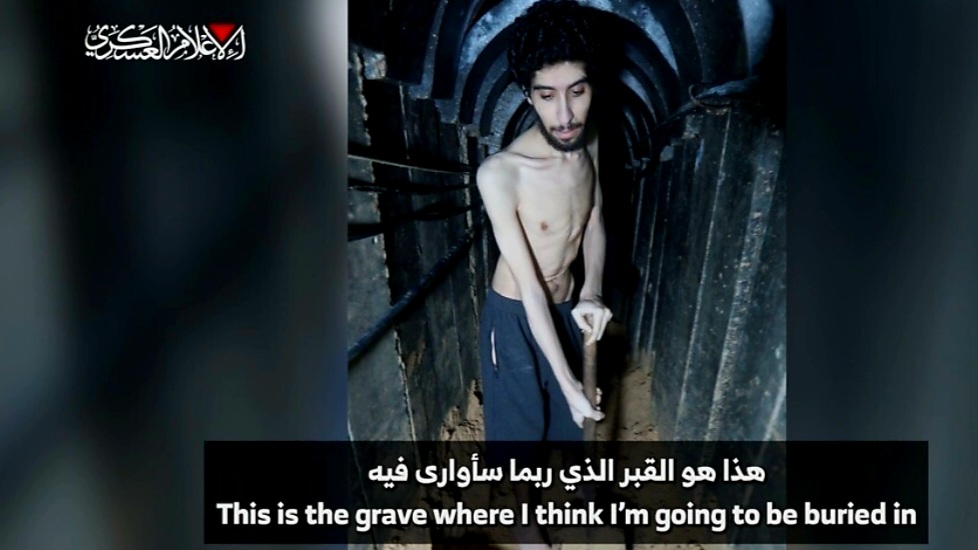 بثت "كتائب القسام" الجناح العسكري لحركة "حماس"، مشاهد جديدة لأسير صهيوني داخل أحد الأنفاق بغزة، تتضمن رسالة من الأسير "هذا هو القبر الذي ربما سأوارى فيه".