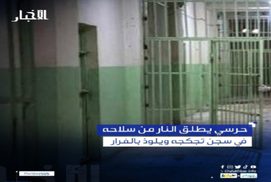 اقدم حرسي فى سجن مدينة تجكجة بأطلاق عدة أعيرة نارية من سلاحه الشخصي مساء امس الخميس داخل السجن، وفي محيطه ثم لاذ بالفرار.