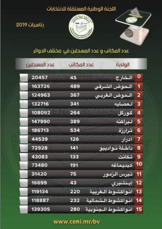 أعلنت اللجنة الوطنية المستقلة للانتخابات عن العدد النهائي لعدد المكاتب والمسجلين على اللائحة الانتخابية الذي تمخض عنه الإحصاء الإداري ذو الطابع الانتخابي الذي نظمته اللجنة الانتخابية يوم 24 ابريل الماضي والذي انتهى يوم 14 مايو.