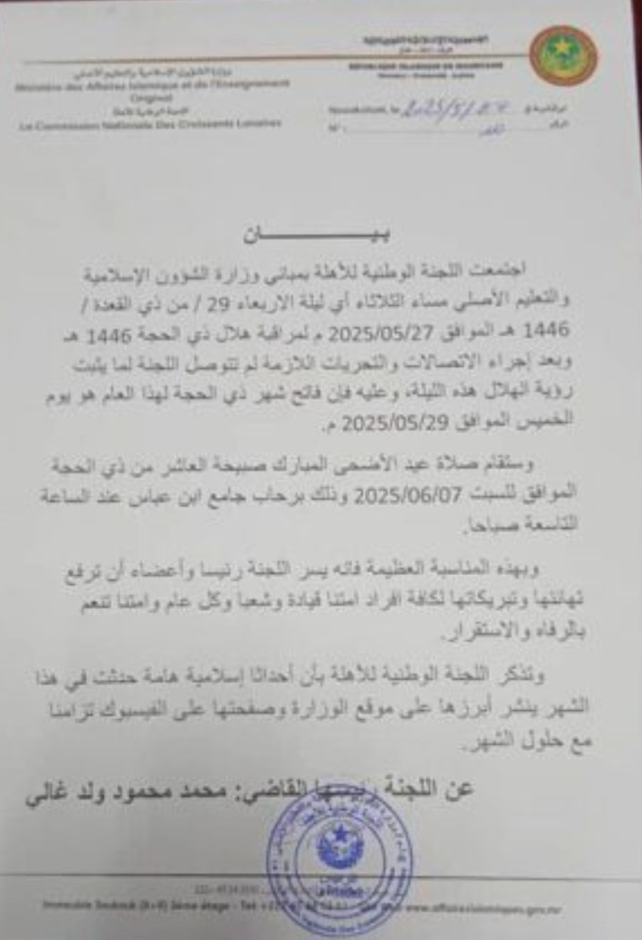 لحنة الاهلية:يوم الخميس 29 مايو هو غرة شهر ذي الحجة1446ه