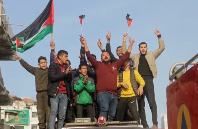 خرج آلاف الفلسطينيين إلى الشوارع في أنحاء قطاع غزة مع بدء سريان اتفاق وقف إطلاق النار بين الاحتلال المجرم وحركة(حماس) اليوم الأحد، بعضهم للاحتفال، والبعض الآخر لزيارة قبور الأقارب، بينما عاد كثيرون لتفقد منازلهم.