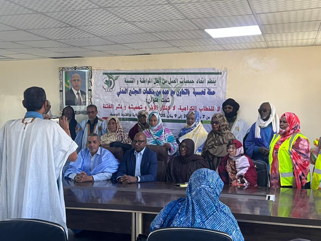 قام اتحاد جمعيات العمل من اجل المواطنة بالتعاون مع منظامات المجتمع المدنى النشطة بحملة تحسيسية حول خطاب الكراهية,في نواكشوط الجنوبية يوم امس الثلاثاء في مقاطعة عرفات واليوم الأربعاء في مقاطعة الميناء.