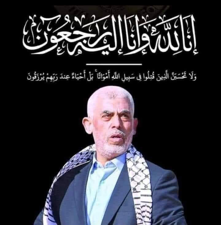 وكانت عصابة الإرهاب الصهيونية قالت إنها اغتالت السنوار فى رفح،وسحبت جثمانه إلى داخل الأراضي المحتلة للتحقق بعد فحص الحمض النووي للجثمان.