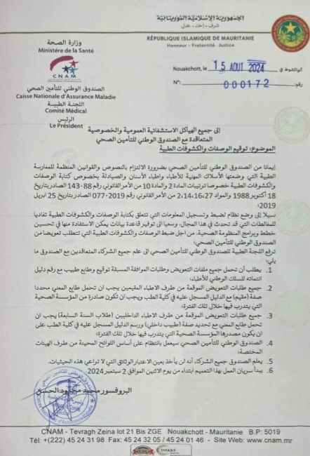 أعلن الصندوق الوطني للتأمين الصحي "اكنام" عن إجراءات جديدة تتعلق بوضع نظام لضبط وتسجيل المعلومات التي تتعلق بكتابة الوصفات والكشوفات الطبية.