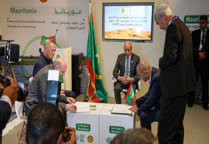 وأشرف على توقيع الإعلان المشترك والاتفاقية ومذكرة التفاهم، الرئيس محمد ولد الغزواني، وذلك على هامش مؤتمر "كوب28" بدبي.