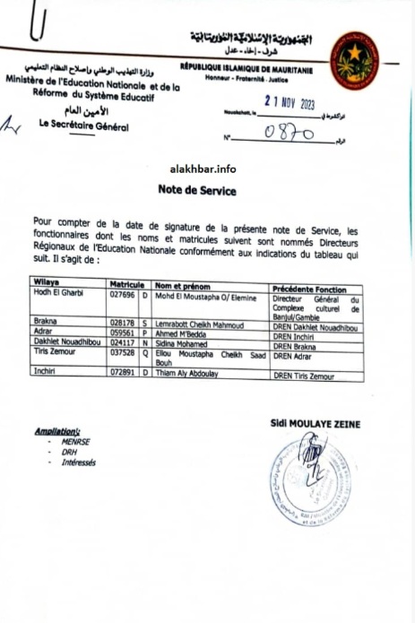 نواكشوط(وكالة السواحل للأنباء):بيان توضيحي صادر عن :
