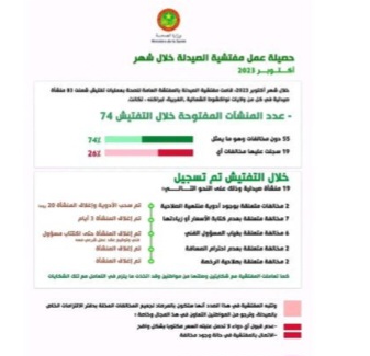 نواكشوط(وكالة السواحل للأنباء ): أوضحت وزارة الصحة في بيان حصلت الوكالة الموريتانية للأنباء على نسخة منه، اليوم الخميس في نواكشوط، أن مفتشية الصيدلة بالمفتشية العامة للصحة قامت خلال شهر أكتوبر 2023، بعمليات تفتيش شملت 83 منشأة صيدلية في كل من ولايات نواكشوط الشمالية، والغربية، ولبراكنه ، وتكانت.