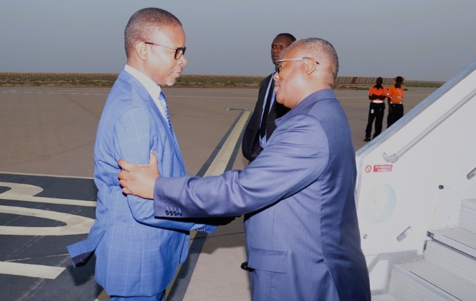 نواكشوط(وكالة السواحل للأنباء):اختتم رئيس غينيا بيساو عمرو سيسوكو إمبالو، مساء الخميس زيارة لنواكشوط استمرت عدة ساعات أجرى خلالها مباحثات مع نظيره الموريتاني محمد ولد الغزواني.