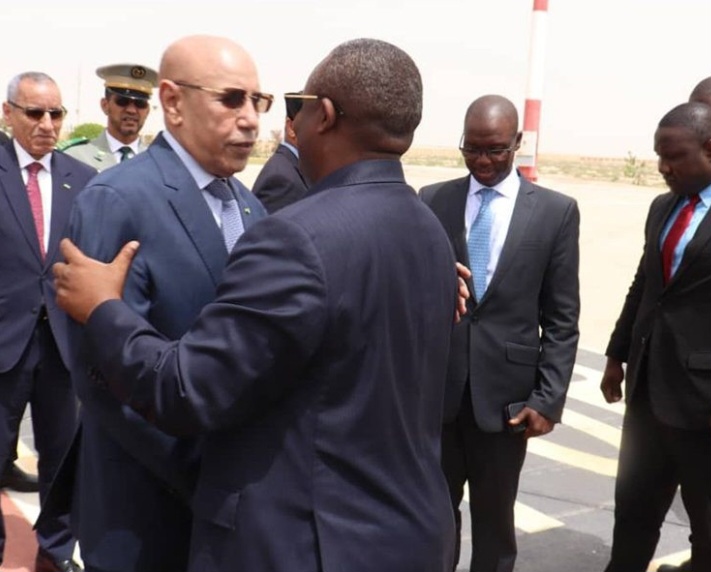 واستقبل عمر سيسوكو إمبالو، بمطار نواكشوط الدولي من طرف نظيره الموريتاني محمد ولد الغزواني.