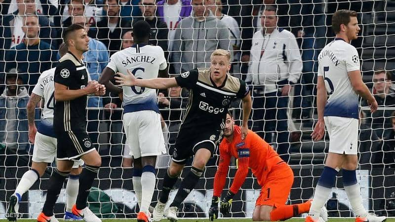 خطا أياكس أمستردام الهولندي خطوة كبيرة نحو المباراة النهائية لمسابقة دوري أبطال أوروبا في كرة القدم بفوزه الثمين على مضيفه توتنهام الإنجليزي 1-صفر، الثلاثاء، في لندن في ذهاب الدور نصف النهائي لمسابقة دوري أبطال أوروبا لكرة القدم.