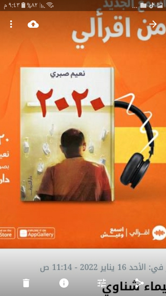 أتاح تطبيق منصة «اقرألي» للكتب المسموعة، رواية «2020»، أحدث المؤلفات الأدبية للكاتب والروائي نعيم صبري، الصادرة عن دار الشروق، ككتاب مسموع من خلال التطبيق.
