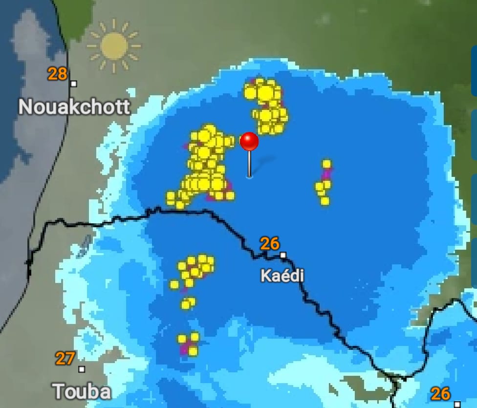 وسجل تهاطل أمطار من خفيفة إلى متوسطة في ولايات الحوض الشرقي، والبراكنة، والترارزة.